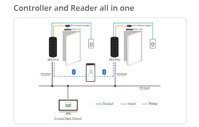 M3 Pro is a metal casing, IP65 water-proof design compact access control device, suitable for outdoor applications.It supports 13.56MHZ Mifare card and 125KHZ EM card dual frequency module. The touch backlit keypad, support TCP/IP and RS485 communication convenient for customers to use. The M3 Pro has both built-in relay for direct lock and standard Wiegand output, which can be work as standalone access controller and RFID reader.